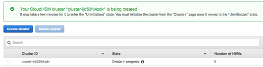 Follow the steps below to create a cluster and an HSM: