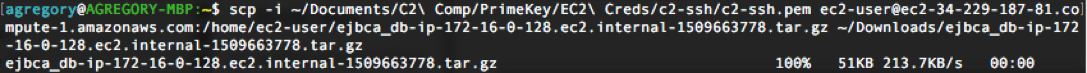 # scp -i ~/Documents/C2\ Comp/PrimeKey/EC2\ Creds/c2-ssh/c2-ssh.pem ec2-user@ec2-34-229-187-81.compute-1.amazonaws.com:/home/ec2-user/ejbca_db-ip-172-16-0-128.ec2.internal-1509663778.tar.gz ~/Downloads/ejbca_db-ip-172-16-0-128.ec2.internal-1509663778.tar.gz