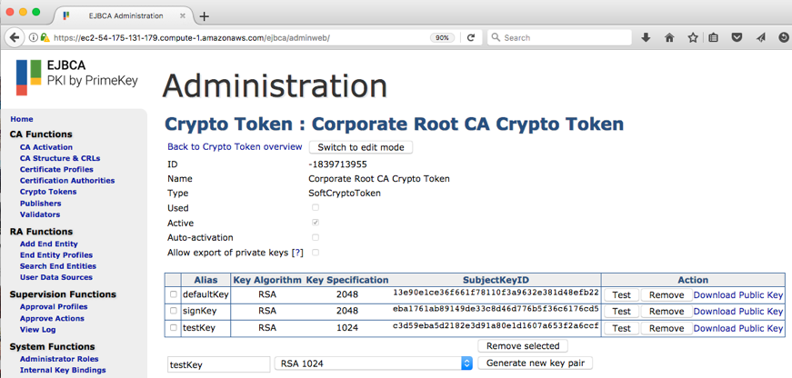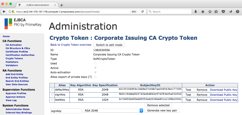 Within EJBCA, Crypto Tokens store the keys that our CA uses to perform its duties.
