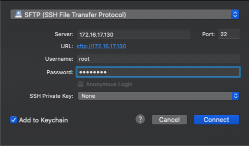 If using a Mac or Linux based computer use the following command to copy the file to the host (Note: If using AWS, ensure you specify the user as ec2-user with your SSH key and in Azure, specify the user provisioned with your instance)BASHscp ~/Downloads/ejbca_ee_7_3_1_4_virtual_appliance_upgrade.zip root@172.16.17.130:/opt/dist/- If using a program such as WinSCP or CyberDuck: