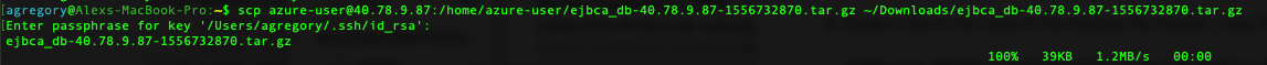 CODE# scp azure-user@40.78.9.87:/home/azure-user/ejbca_db-40.78.9.87-1556732870.tar.gz ~/Downloads/ejbca_db-40.78.9.87-1556732870.tar.gz