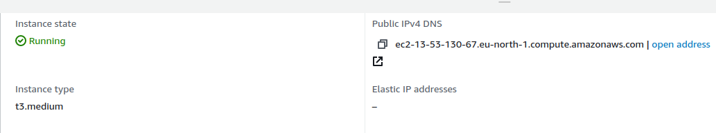 In this case, the DNS name is ec2-13-53-130-67.eu-north-1.compute.amazonaws.com, which is used in the following example commands.