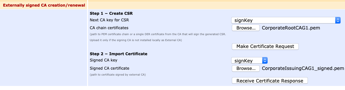- In the section Externally signed CA creation/renewal: