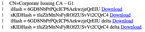 For example: For example: https://issuing.corporation.us.prod.saas.primekey.com/ejbca/publicweb/crls/search.cgi?iHash=ABCDEFGzZab1cdEF4VAJRz2z8Ab1cA new CA will have been added to the cached CRLs page.
