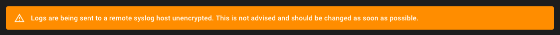 A warning banner is displayed on every page of the portal if a TCP logger entry is configured, and will remain until the logger entry is removed.