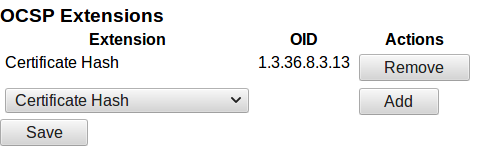 The following describes setting up the CertHash OCSP extension in the OCSP/VA server.