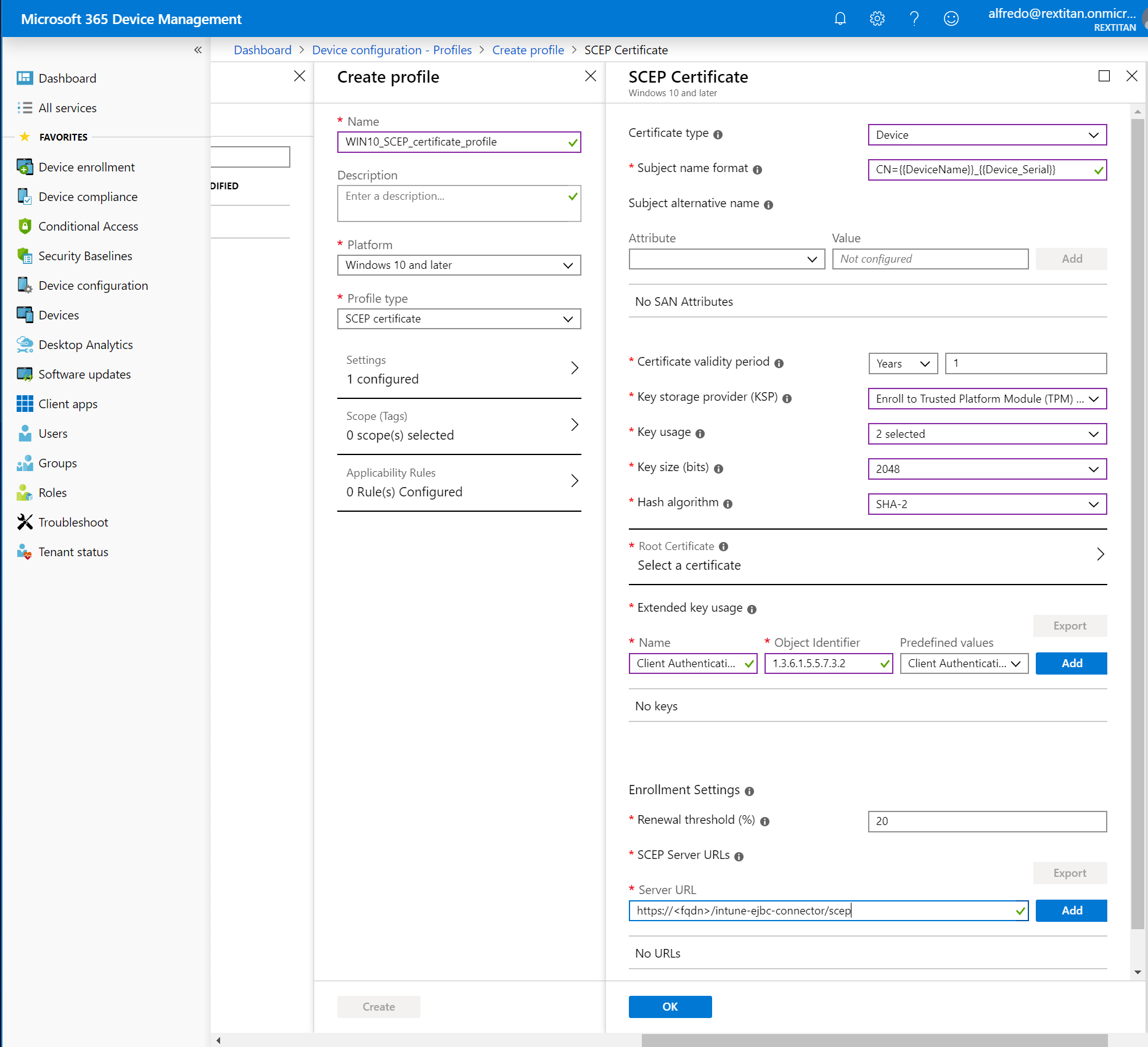 Enter the profile Name: WIN10_SCEP_certificate_profile.