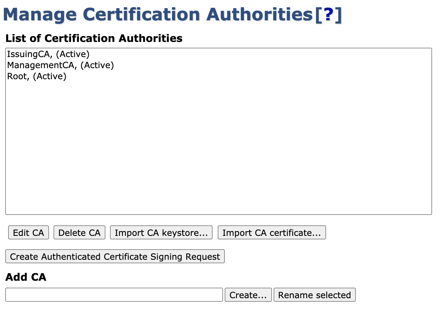 For more general information on managing CAs, see Managing CAs and for conceptional information, see Certificate Authority Overview.