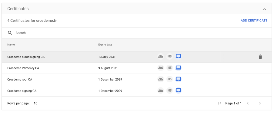 Under Devices > Networks > Certificates, click Add certificate. This should be done at the root of the Google domain or for Chromebooks root OU