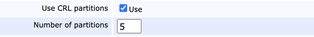 If your population of unexpired certificates is large and you rely on CRLs, you might start finding that CRL generation times are beginning to spin out of control and that CRL sizes become unmanageable. EJBCA supports CRL partitioning in accordance with RFC 5280, allowing certificates to be assigned to a specific CRL shard.