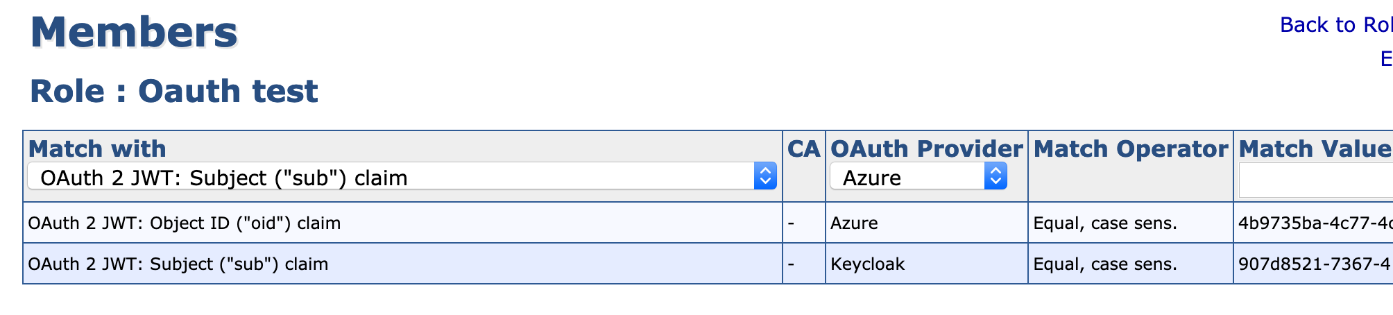 Object id ("oid") claim: As Match Value, use the Active Directory users Object ID, in this example: 75eca0fa-903b-4a6c-b2de-4210b3ed6d63.