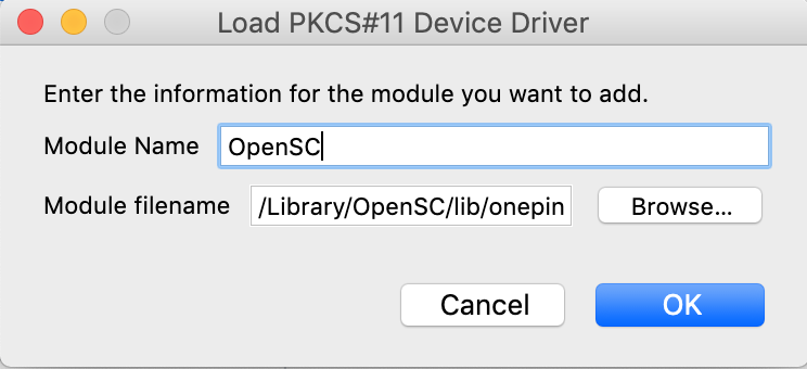To add the OpenSC PKCS#11 module to Chrome or Chromium: