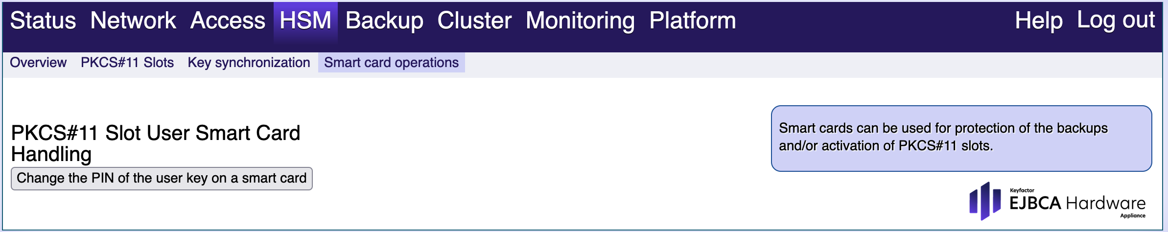 - Change the PIN on a smart card that comes originally from another Hardware Appliance.