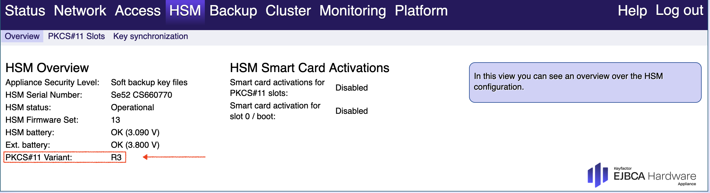 On your Hardware Appliance, go to the WebConf tab HSM > Overview. You will find the PKCS#11 version in the line PKCS#11 Variant: