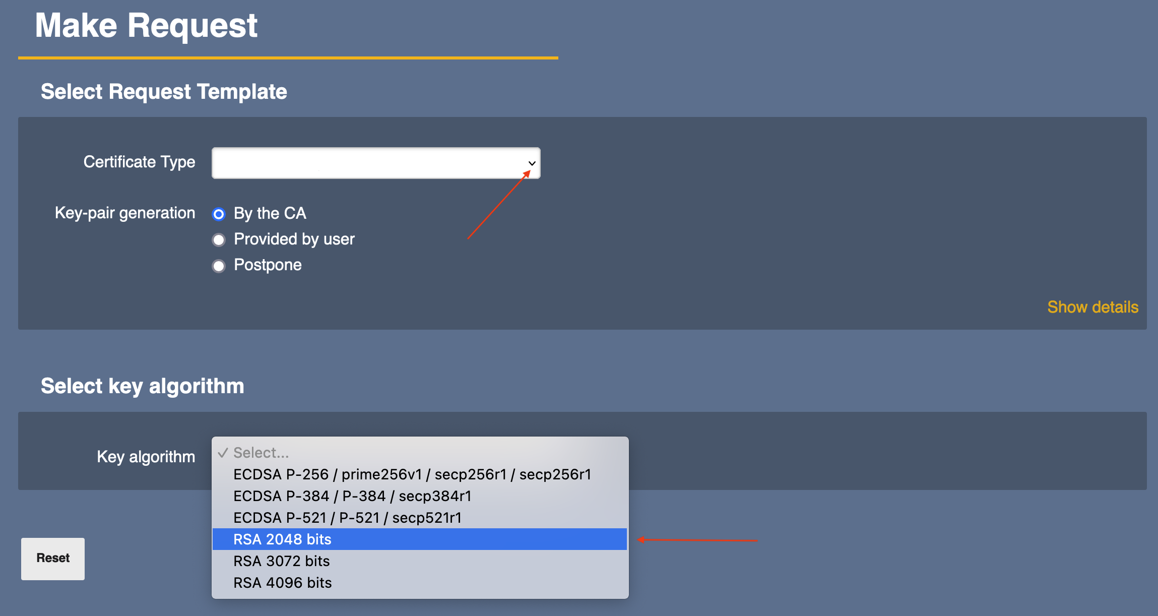 Key-pair generation: make sure By the CA is activated.Section Select key algorithm: