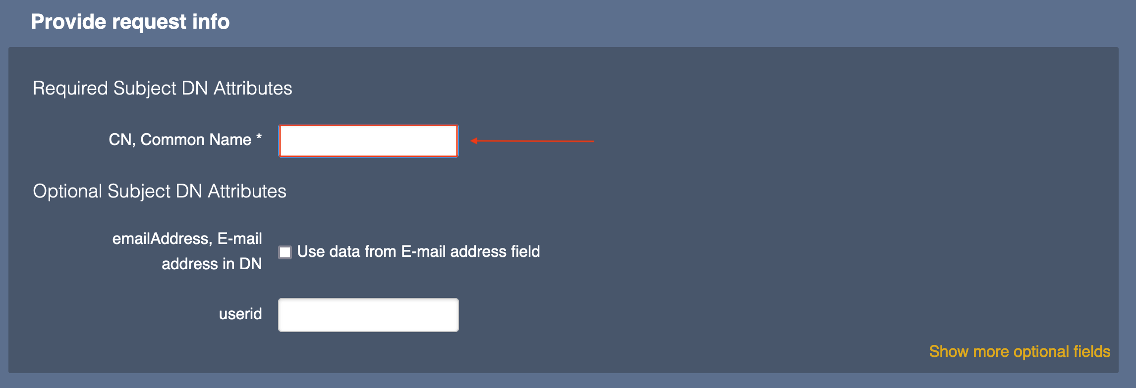 Subject DN Attributes: - CN, Common name: Enter testsrv.course