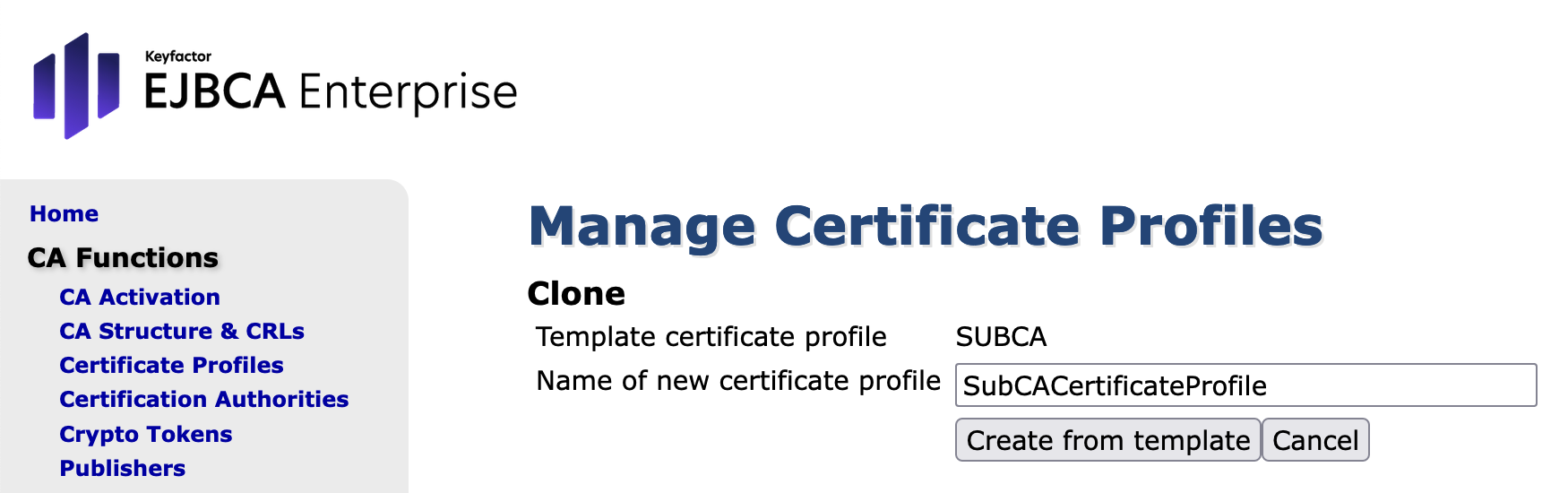 - In the sidebar, in the CA Functions section, select Certificate Profiles.