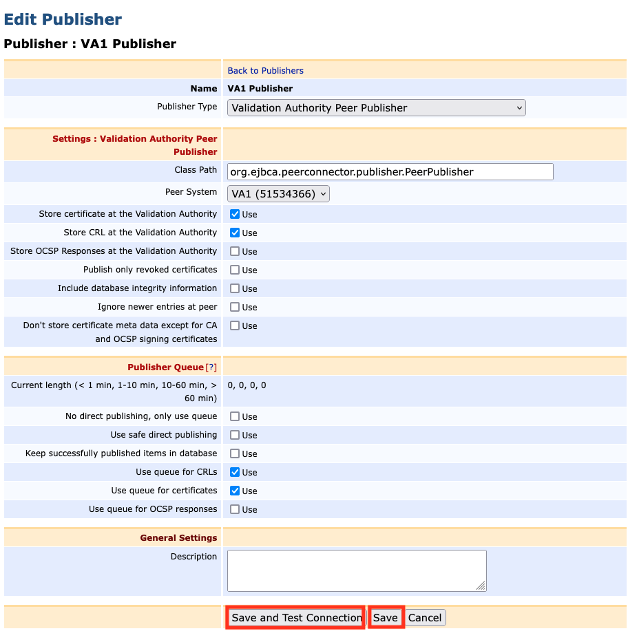 In the form Edit Publisher make the following entries in the Publisher : VA1 Publisher: