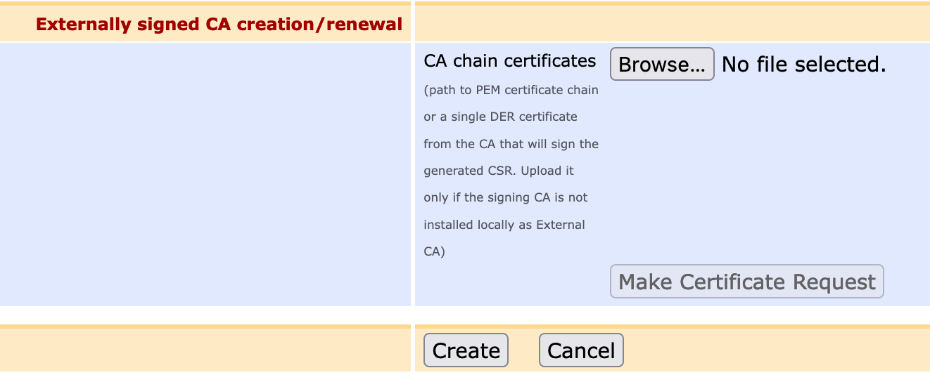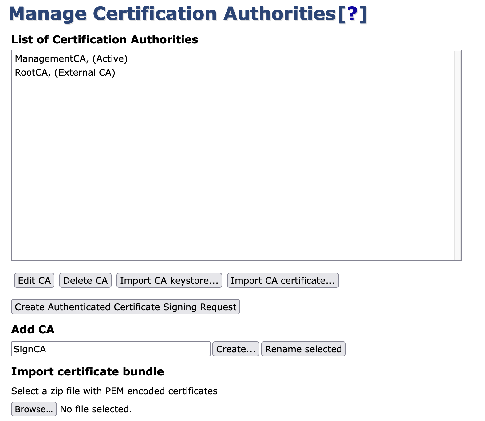In the section Externally signed CA creation/renewal > Step 2, click Browse and search for the SignCA.pem.