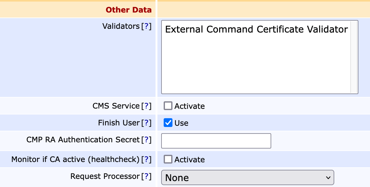 CRL Overlap Time (*d *h *m): Enter the value 2h. The following rows in this section do not need entries.- Section 'Default CA defined validation data'