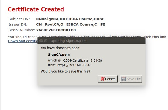 This step is NOT needed if you have imported RootCA as an External CA. Otherwise, RootCA.pem can be downloaded from the Public Web of the EJBCA Hardware Appliance which is installed the RootCA.