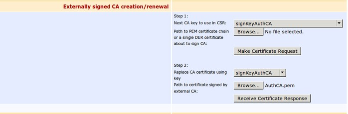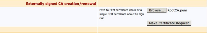 6. In the section Externally signed CA creation/renewal click Browse... and upload the RootCA.pem file.