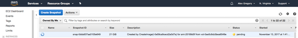 - In the sidebar, select Snapshots. You will see the pending snapshot being created.