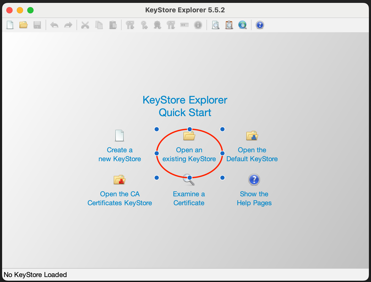 Install and open Keystore Explorer. Pick "Open an existing Keystore" and select your superadmin.p12 (or other SignServer administrator keystore).