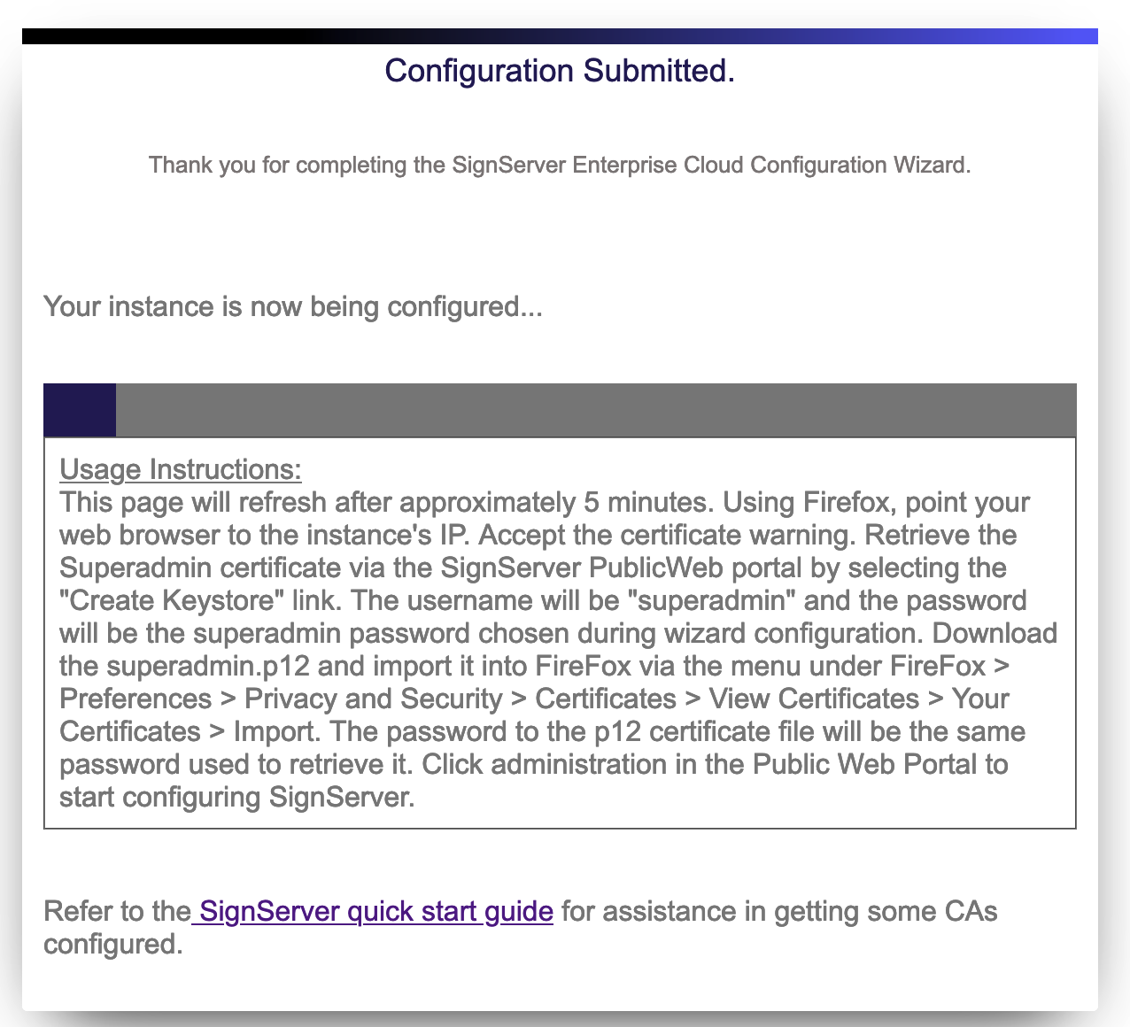 If you are using the 1.x version of SignServer Enterprise Cloud, proceed to the next step Log in to SignServer Enterprise Cloud 1.X on AWS to retrieve the superadmin certificate from your instance.