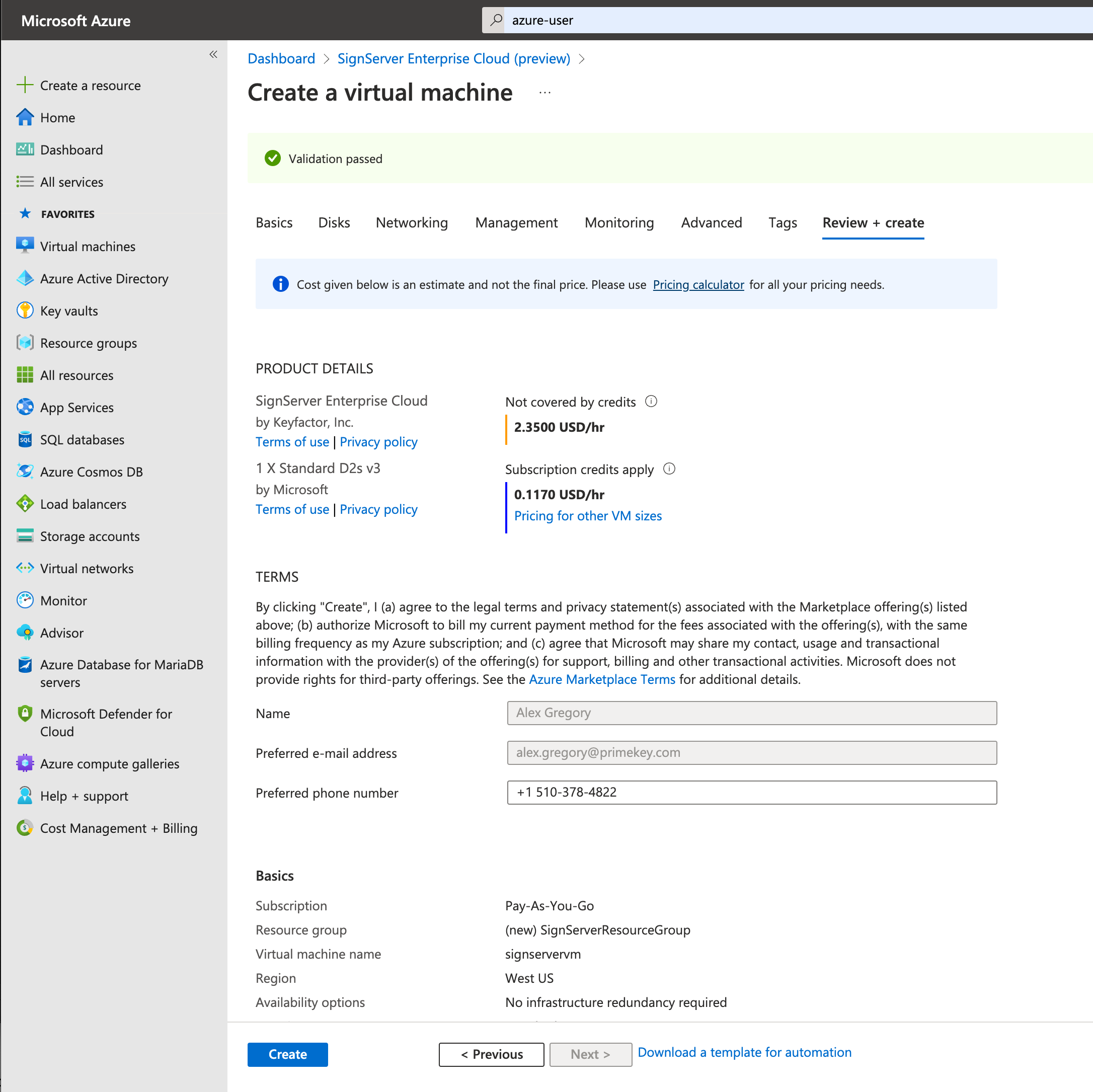 The Azure Portal is a web interface that allows you to configure the SignServer Enterprise Cloud instance details from a web browser before you launch it. Follow the instructions below to launch an SignServer Cloud Azure instance.