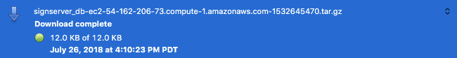 CODE# scp -i ~/Documents/C2\ Comp/PrimeKey/EC2\ Creds/c2-ssh/c2-ssh.pem ec2-user@ec2-34-229-187-81.compute-1.amazonaws.com:/home/ec2-user/signserver_db-ip-172-16-0-128.ec2.internal-1509663778.tar.gz ~/Downloads/signserver_db-ip-172-16-0-128.ec2.internal-1509663778.tar.gzUsing a SCP utility (in this case Cyberduck):