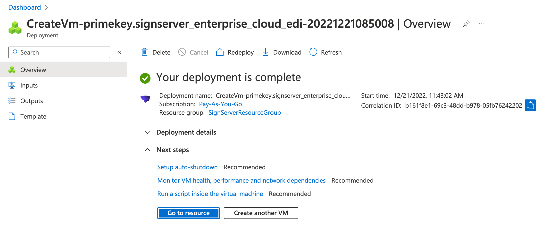- After launching the instance in Azure, click the Go to resource button to get to the resource group Overview: