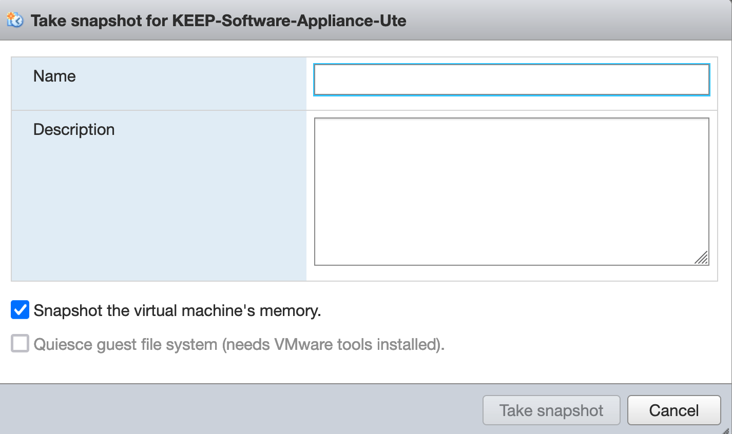 - Mark the checkbox: Snapshot the virtual machine‘s memory.