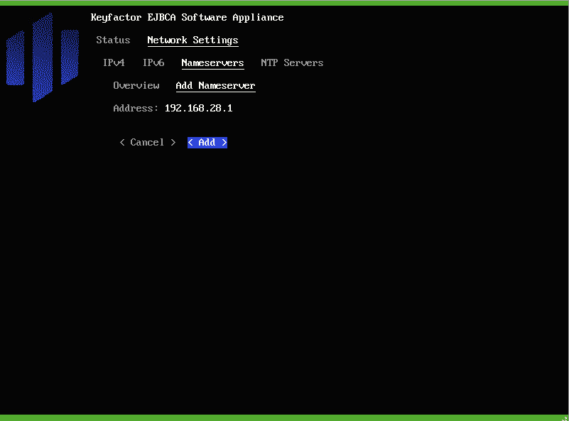 If you use your own nameservers on your network, you can register and manage them with the Software Appliance Terminal UI. Proceed as follows: