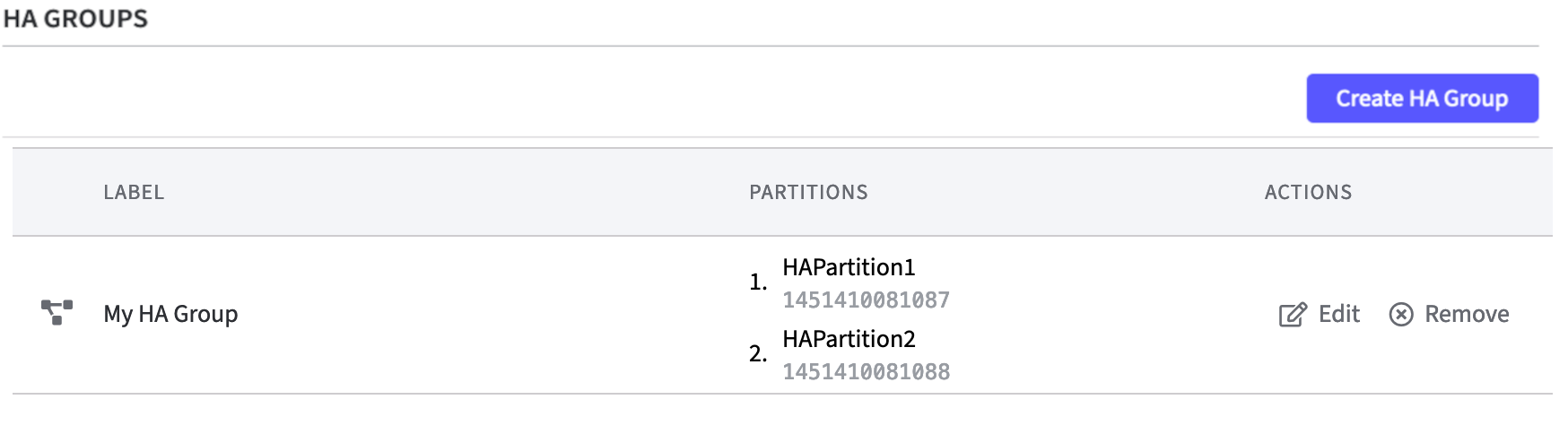 Enter HA Group Label.