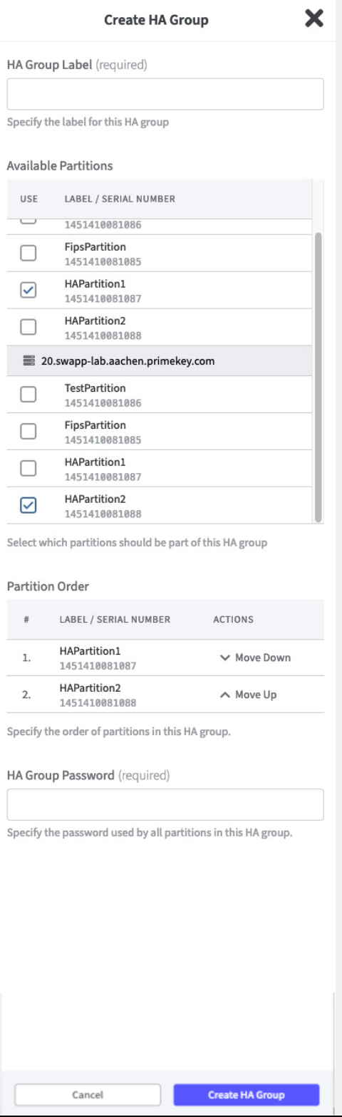 If you want to use HA Groups, at least two HSM devices must be listed.