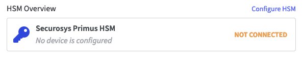 - In the Overview you can now see that the Securosys Primus HSM is listed, but Not Connected and no device is configured yet.