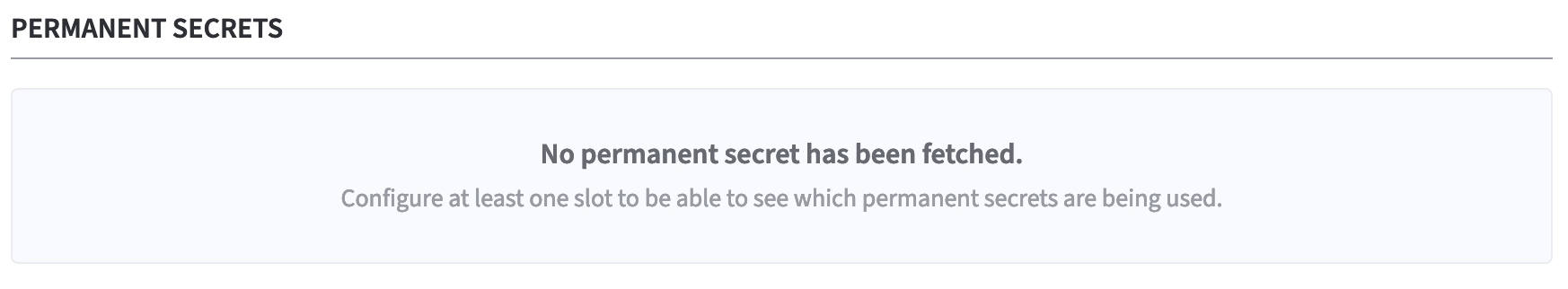 After the configuration of the HSM Slots, the user name (partition) will be displayed under Permanent Secrets.