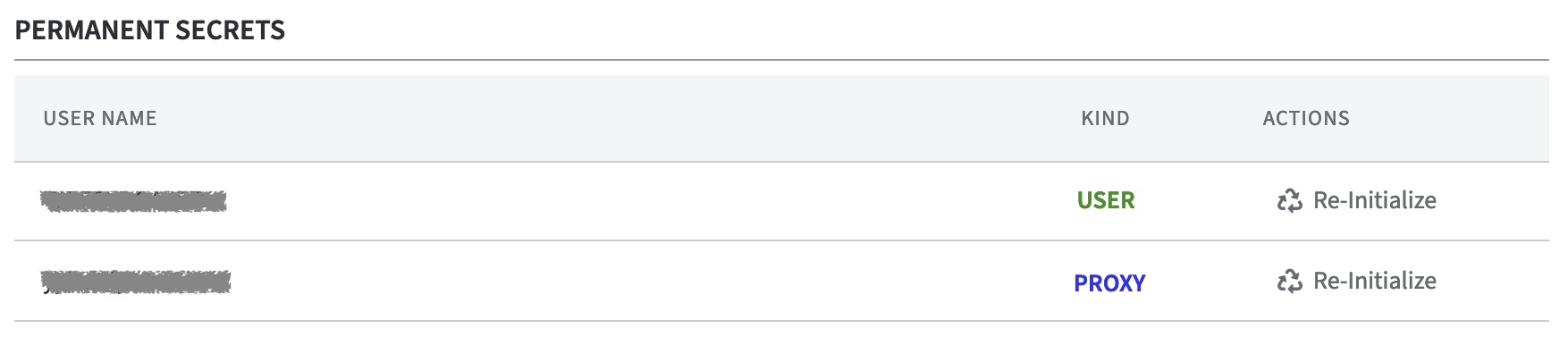 It is possible to Re-Initialize Permanent Secrets for the User or for the Proxy.