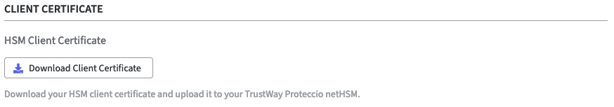 Download your HSM client authentication configuration and upload it to your TrustWay Proteccio netHSM.