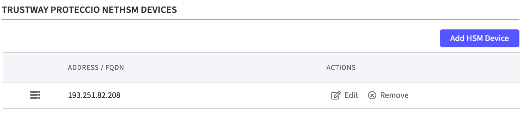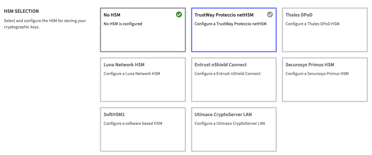 To configure a TrustWay Proteccio netHSM for your Software Appliance, follow the steps below.