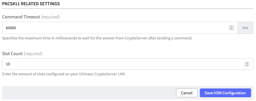 Enter the amount of slots configured on your Utimaco CryptoServer LAN.