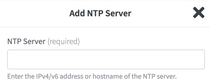 - Enter the IPv4/IPv6 address or hostname of the NTP server.