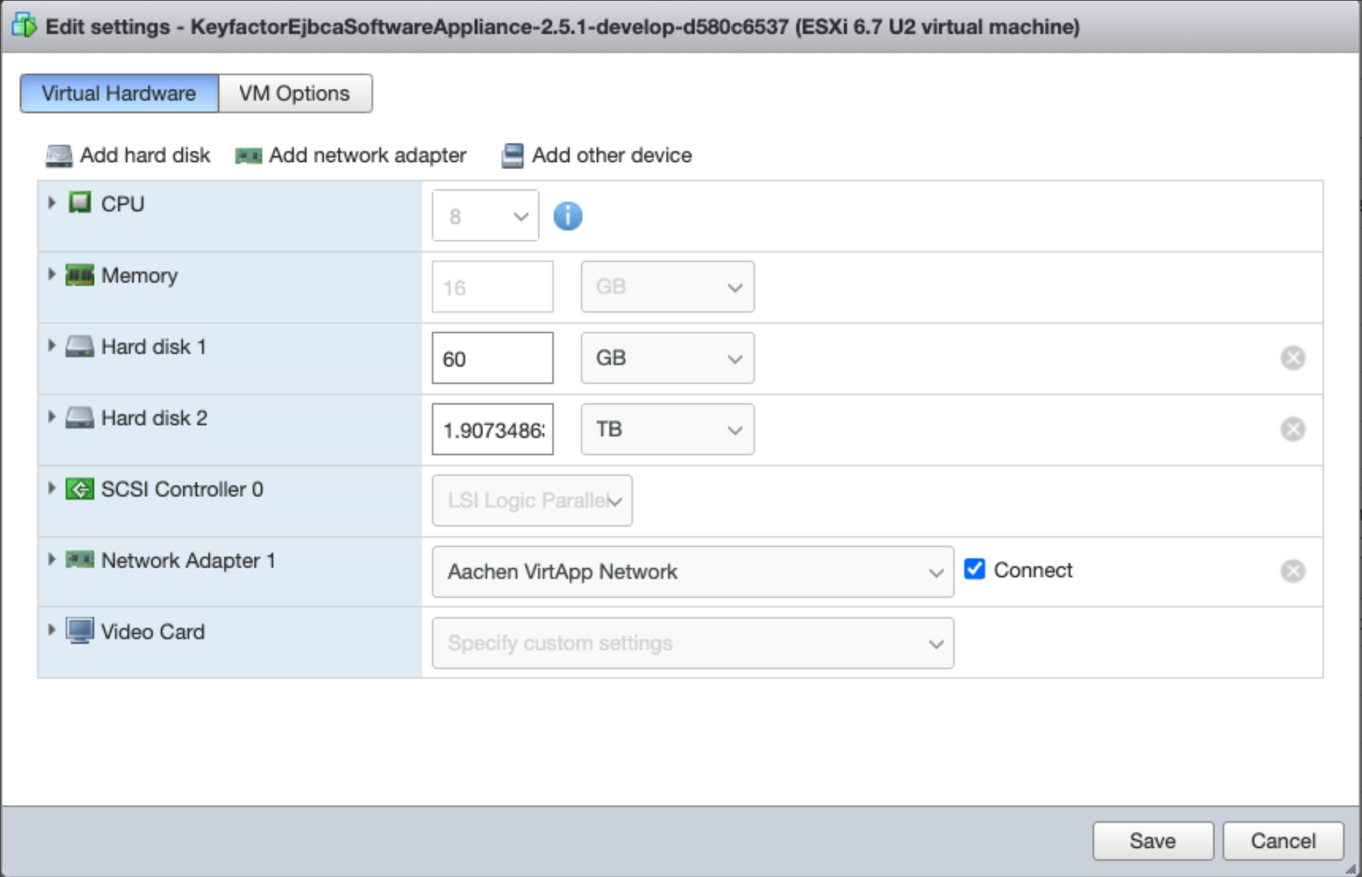 - Save the configuration and wait a few minutes until the VM is completely reconfigured.