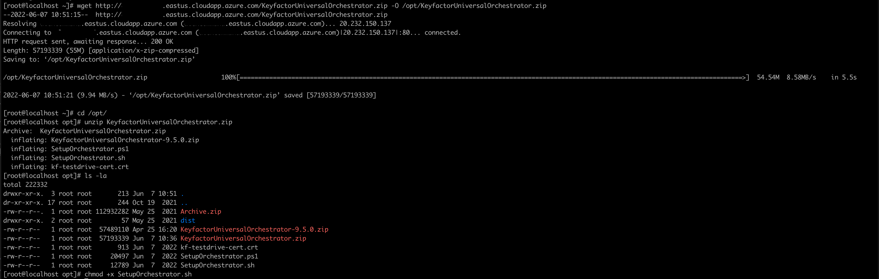 # wget https://<mytestdriveurl>.eastus2.cloudapp.azure.com/KeyfactorUniversalOrchestrator.zip -O /opt/KeyfactorUniversalOrchestrator.zip