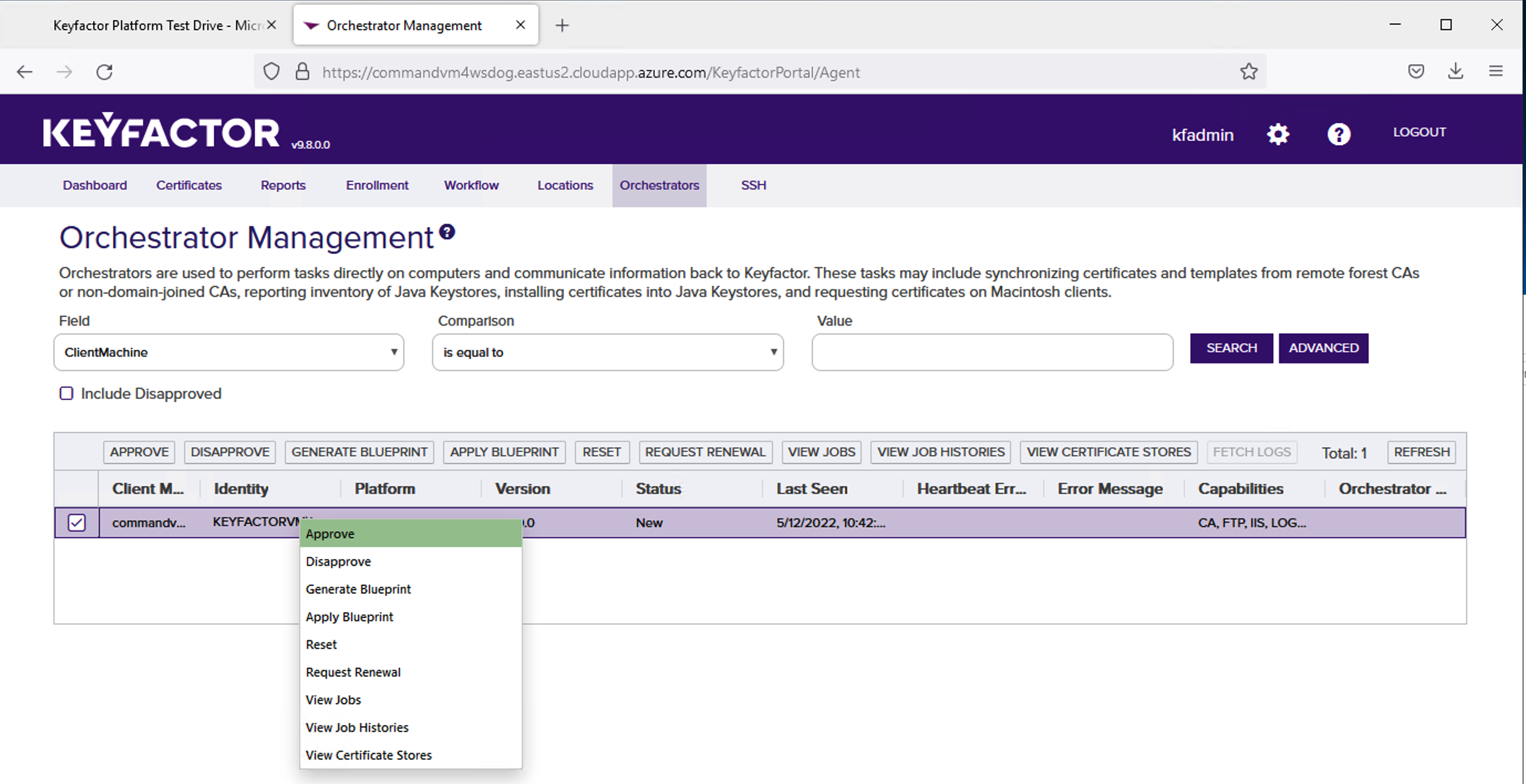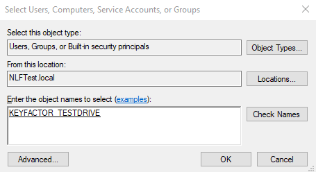 Ensure the account from the previous step is highlighted (i.e. “KEYFACTOR_TESTDRIVE”)