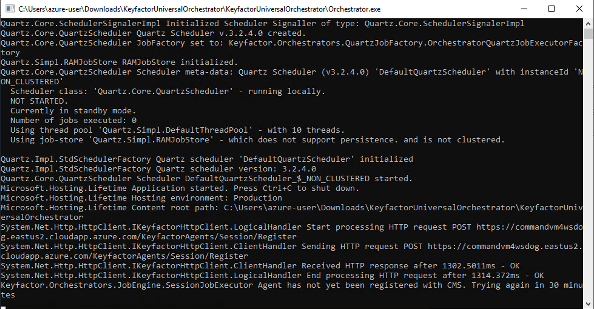 Once the installation steps outlined above are completed, it will stop and ask you to press enter before starting the orchestrator for you. Make a note of the path noted in the Window. This is the path that you can use to manually start the orchestrator later.