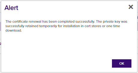 A dialog box will appear indicating that the certificate was successfully renewed.