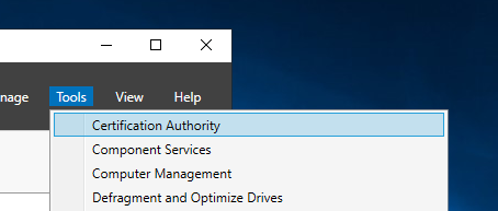 Launch the Server Manager and select Certification Authority from the Tools menu.