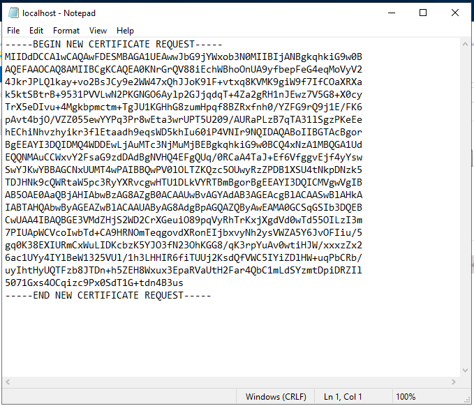 Open the resulting file using Notepad and confirm the file contents look like the picture below. Select the entire contents of the file and copy to the clipboard.
